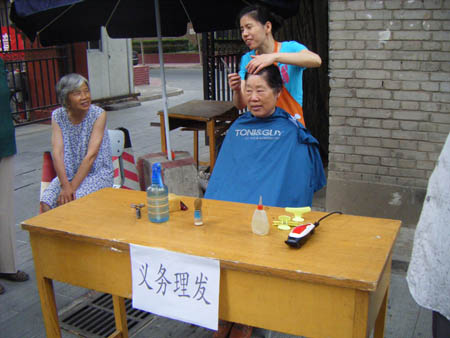 盡管天氣悶熱,但絲毫沒有影響大家的服務熱情,大家各自發揮特長,為居民義務理發、修理自行車、洗眼鏡、測血糖、量血壓、量身高體重,免費發放蒼蠅拍、蟑螂藥、菜譜、盆花、購物袋,現場進行甲型H1N1流感預防、心腦血管保健、家庭節能、花卉養殖、居民理財、法律咨詢,并入戶進行維修。共免費發放各類宣傳資料近2000份、盆花300盆、菜譜100本、蒼蠅拍120個、蟑螂藥160袋、購物袋200個,為200余人量血壓,為200多人測血糖,為40多人洗眼鏡,為30多人理發,為15人修理自行車,到10戶居民家中免費修理水龍頭、換燈泡、修插座、修門窗。大家的熱情服務,得到了居民們的一致好評。有的老太太還拉著工作人員的手說:“你們后勤真是為老百姓辦實事,黨員服務群眾,這已經是第三年了,我每年都來,真像過節一樣熱鬧。”