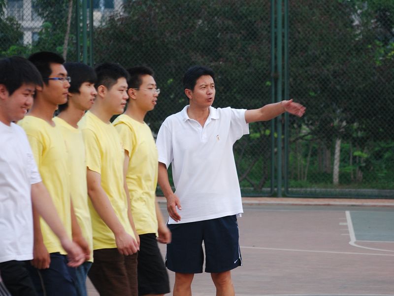 很多老師都是同學們所熟悉的。平時,他們和同學一起打球、一起流汗、一起歡笑。訓練中,他們也和大家一起流汗,不同的是為了圓滿完成國慶任務,他們更加嚴肅、不茍言笑。從動作到口號、從細節到整體,任何一個不規范的地方他們都不放過。為了保證隊伍做到橫、豎、斜“三條線”,“稍息立正、前后對正、左右看齊”成了他們的口頭語;“雙手食指貼緊褲線,拇指放在食指第二關節”是他們每天重復次數最高的話。他們一遍又一遍不厭其煩的提醒著同學們,只愿在最短訓練內取得最佳效果。