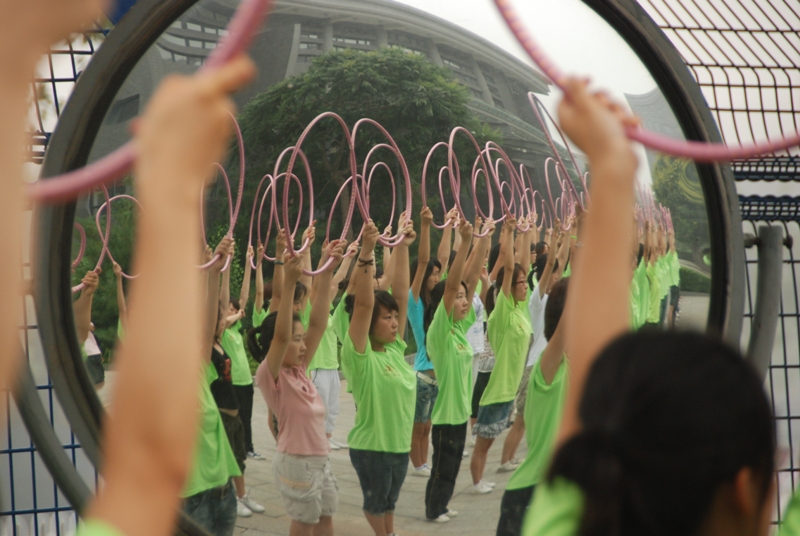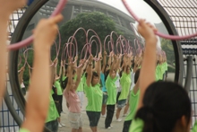 踏著歌曲《東方紅》的音樂節奏,同學們排著整齊的隊伍前進,他們揮動著手中的花環經過操場觀禮臺,雄健的步伐與標準的動作展示著他們刻苦訓練的成果和堅韌不拔的意志。手持花環的動作是本周訓練新增內容。雖然是首次集體合練,但是在王立紅老師的指揮與同學們的齊心努力下,大家基本做到了統一標準。千人花環表演的壯觀場面,得到了領導們的高度評價。