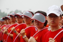 在首先進行的分指方陣訓練中,各個方陣步伐統一、動作標準、排面整齊,得到了其他方陣同學的贊許。看臺上掌聲、贊許聲一浪高過一浪。在稍后進行的我校國慶大隊合練中,來自六個學院的兩千多名同學踏著音樂的節拍,邁著整齊的步伐通過主席臺,得到了孫堯東同志的高度肯定。
