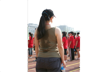 每天早上李紅老師都起得很早,雖然很累,但她總是精神飽滿地出現(xiàn)在大家面前,帶領(lǐng)大家開(kāi)始一天的訓(xùn)練。訓(xùn)練中,她拿著喇叭響亮而有力地喊著“一、二、一”,和著《東方紅》的節(jié)拍,帶著學(xué)生一遍一遍地走著,練著。烈日下,她一遍一遍地給同學(xué)糾正花環(huán)動(dòng)作,汗水常常浸透衣服。“集中注意力”、“聽(tīng)清口令”、“注意排面”、“好,走得不錯(cuò)”是李紅老師在訓(xùn)練中說(shuō)的最多的話,在問(wèn)及對(duì)參訓(xùn)同學(xué)的整體印象時(shí),李紅告訴記者:“同學(xué)們走得都挺好,練得也很認(rèn)真,在無(wú)形中取得了很大的進(jìn)步,就像今天上午的合練大家走得相當(dāng)不錯(cuò),取得了意想不到的效果。”