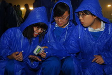10月1日凌晨2點,迎著微微細雨,北京工商大學首都國慶群眾游行“艱苦創業”方隊踏上了去往天安門的征途。黨委副書記盧思鋒激動地說:“我們將盡我們最大的努力圓滿地完成這項祖國交給的光榮任務任務,為祖國六十華誕獻禮!”。
