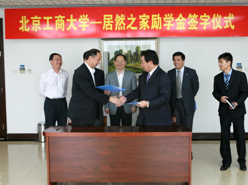 10月27日上午,校友企業(yè)北京居然之家投資控股集團(tuán)有限公司向北京工商大學(xué)教育基金會捐贈簽約儀式在良鄉(xiāng)校區(qū)行政樓舉行,居然之家集團(tuán)一次性捐贈一百萬元人民幣設(shè)立“居然之家勵學(xué)金”,譚向勇校長出席簽約儀式。校黨委副書記、北京工商大學(xué)教育基金會理事長盧思鋒與北京居然之家投資控股集團(tuán)有限公司總裁汪林朋代表雙方在合同文本上簽字,副校長、北京工商大學(xué)教育基金會副理事長謝志華主持儀式,居然之家人力資源部、辦公室和學(xué)校校辦、校慶辦負(fù)責(zé)同志參加了簽約儀式。