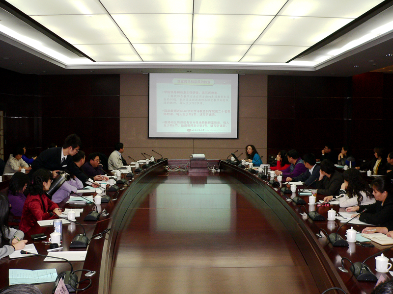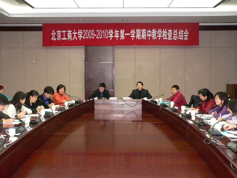 11月30日上午,學校召開北京工商大學2009—2010學年第一學期期中教學檢查總結會。各教學單位主管教學的副院長(副主任)、教學秘書和教務處領導、各辦公室主任參加了會議。會議聽取了各教學單位的期中檢查工作匯報。教務處周莉副處長主持會議,張曉堂處長做總結講話。李朝鮮副校長到會并講話,向各教學單位提出了今后開展教學檢查工作的五點要求。