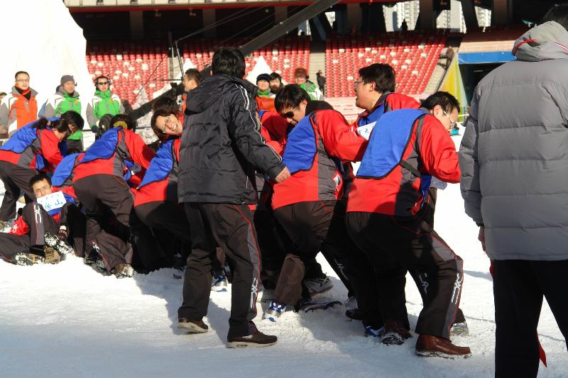 我校教職工代表隊參加了全民健身電視挑戰賽三個雪地項目的比賽:拔河、集體跳繩和“時代列車”(“同舟共濟”)。在隊長呂東燕的帶領下,全體隊員團結協作,發揚了不畏嚴寒、奮勇爭先的精神,取得了周賽集體跳繩第一、拔河第二、“時代列車”第二的好成績,獲得周賽亞軍,展現了北京工商大學教職工積極參加冬季全民健身運動的風采。