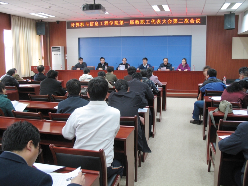 4月21日下午計算機(jī)與信息工程學(xué)院舉行一屆教代會二次會議。學(xué)院教代會代表,院領(lǐng)導(dǎo),教授,各系及實(shí)驗(yàn)中心主任共40人出席了會議。會議主題為:“深化管理體制改革,促進(jìn)教學(xué)科研全面發(fā)展”。會議由學(xué)院分工會主席蘇維均主持。