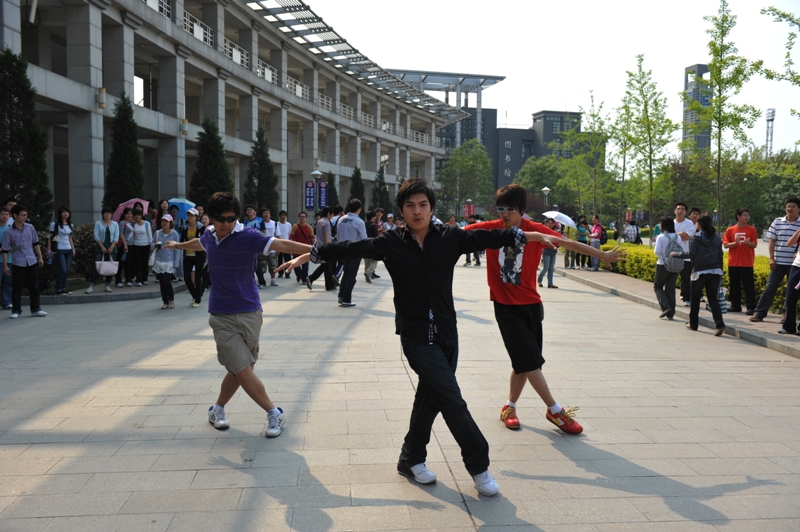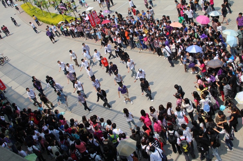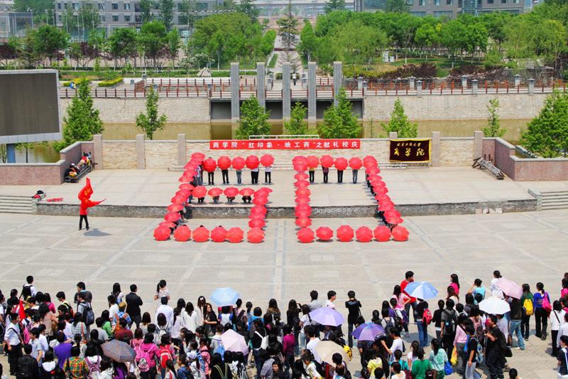 5月13日,商學(xué)院在良鄉(xiāng)校區(qū)組織了兩次大型集體“快閃行動(dòng)”活動(dòng)。當(dāng)天正值我校建校六十周年校慶倒計(jì)時(shí)30天之際,同學(xué)們?cè)诼蓜?dòng)奔放的音樂(lè)伴奏下,一起用充滿激情的舞步和“六十”紅傘陣共同為母校六十歲生日獻(xiàn)禮。這是商學(xué)院“紅印象•映工商”主題學(xué)期中,繼“五四合唱比賽”后組織的又一個(gè)獻(xiàn)禮校慶的系列活動(dòng)。