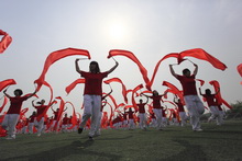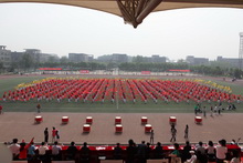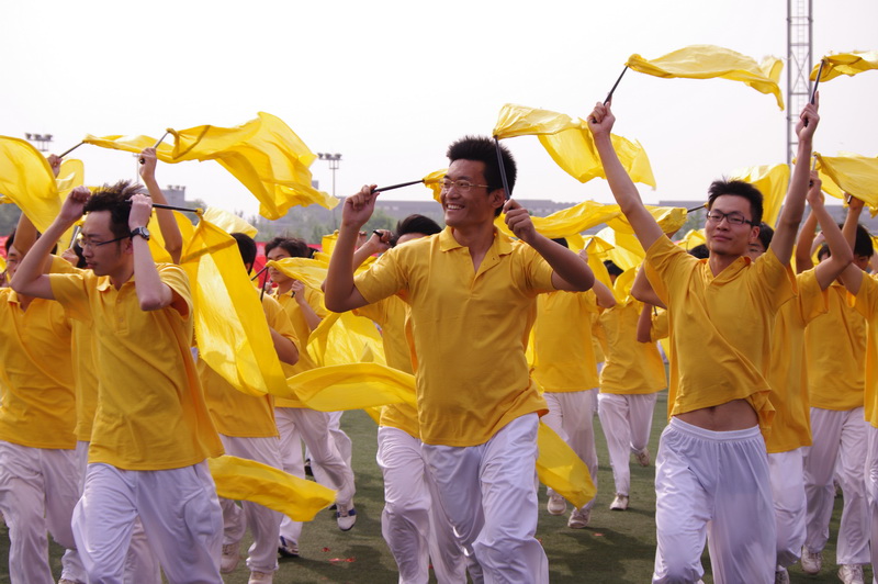 早在 4月9日,紅綢舞的第一次訓(xùn)練就在文體館拉開(kāi)。為迎接校慶準(zhǔn)備的紅綢舞團(tuán)體操,有400名學(xué)生積極參與其中,據(jù)指導(dǎo)老師王立紅透露,本次紅綢舞是學(xué)校有史以來(lái)規(guī)模最大的一次。文體館訓(xùn)練第一天,同學(xué)們還沒(méi)有紅綢,徒手練習(xí)卻都熱情高漲。在后來(lái)的將近兩個(gè)月的時(shí)間里,紅綢舞隊(duì)每周或早上7:00或晚8:00,全體在文體館集合練習(xí)1個(gè)多小時(shí),從未停息。晚上有課的同學(xué)們都不得不6點(diǎn)左右起床晨練,很是辛苦。不過(guò)她們每個(gè)人對(duì)動(dòng)作的熟練掌握也有目共睹。