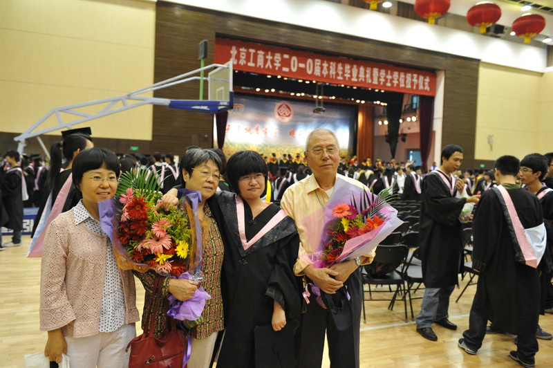 文體館內,又是幸福的三口之家,我校環境062的王絲雨,和爸媽擁著一起照相。看著圓滿畢業的女兒,媽媽感慨萬千,說道:“此時此刻,我想說六個字,首先是感謝,感謝工商大學及老師對孩子的培養,讓我們看到了女兒的成長;其次是希望,希望孩子努力奮斗,成為我們祖國和社會的棟梁;最后是祝福,祝福學生學業有成,祝福工商大學明天會更好!”