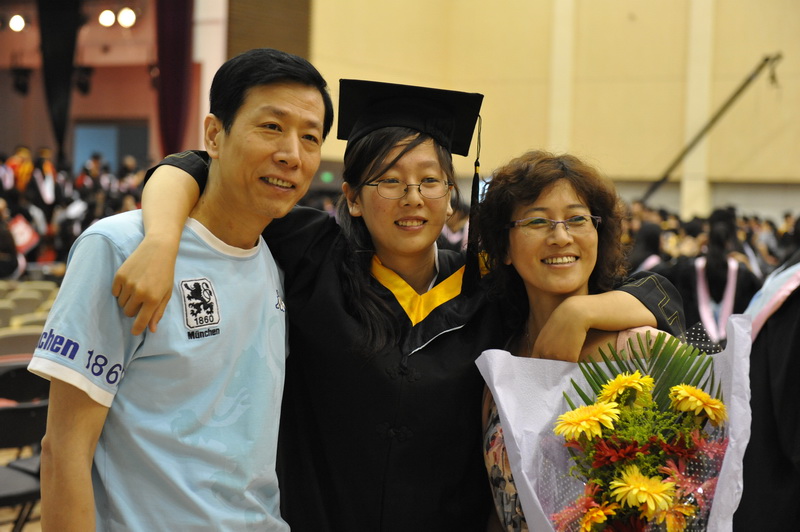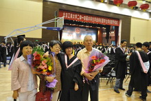 “天人合一”的雕塑前,有一對爸爸媽媽正和女兒一起照相,媽媽說:“畢業了,很欣慰,付出終于沒有白費。”爸爸說:“以后還是得沿著自己的軌道走,順其自然地發展。”媽媽又說:“還是得好好學,不是還考研呢嗎!”終于,“咔嚓”幸福的POSE記錄下了孩子畢業的這一刻。“時間過得真快,現在看到孩子畢業還能想起當初剛送她來上學時的情景,看著她一路自食其力的成長,作為父母真的很高興。”吳丹的爸爸媽媽這樣告訴記者。