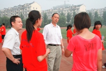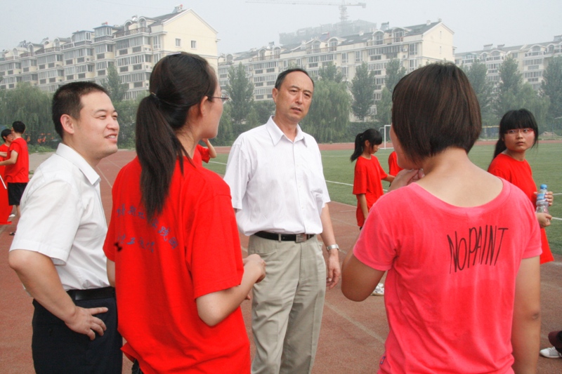 盧思鋒副書記一行隨長陽中學王忠旭主任來到操場,在同學們熱烈的掌聲中,盧思鋒副書記與實踐分團成員交流聊天,對大家表示了深切的關懷,他提醒大家要注意身體,勞逸結合,他希望通過本次夏令營,令大學生和中學生都有所收獲。商學院黨總支書記龐毅老師對在假期之余積極參加此次夏令營活動的中學生們表示了感謝,他相信在這次活動中,每一個人都會有不小的收獲,并希望今后與長陽中學有更多的交流互動。隨后,長陽中學王主任表示,非常榮幸與北京工商大學商學院的大學生們攜手共辦夏令營活動,希望大家共同進步。最后,前來慰問的領導老師與學生們合影留念,記錄下這美好的瞬間。