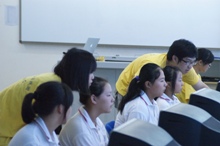 商務禮儀,帶來實踐的歡樂。每位同學們都被安排站在教室中央,按老師的要求,表演各種規范的禮儀動作,向其他同學展示自己。調皮的男同學們錯誤的姿勢很快被糾正,用心的女生們標準規范的動作贏得喝彩。整堂課中,有趣的講解和豐富的活動使大家熱情洋溢,歡笑不斷。在老師的認真指導下,同學們很快掌握了基本的禮儀規范,表現好的同學被挑選出來,將在匯報表演上迎接領導和老師的檢閱。披星戴月的燈光,夢醒時分的朝陽,精心準備之后總算有了回報。