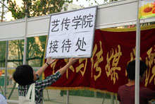各學院提早早地在生活區廣場設立站點,為新生報到提供熱情周到的服務,以確保新生入學報到、辦理核對信息、注冊等工作的順利進行。