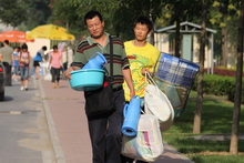 和母親對孩子依依不舍不同,父親更為灑脫,一位從東北送孩子來上學(xué)的父親邊擦著臉上的汗邊對記者說:“孩子來了就是來經(jīng)受鍛煉,涉及學(xué)習(xí)、生活、交友等等很多方面。獨(dú)生子女沒受過什么苦,上大學(xué)了,希望兒子能盡快成熟,逐漸成長。”
