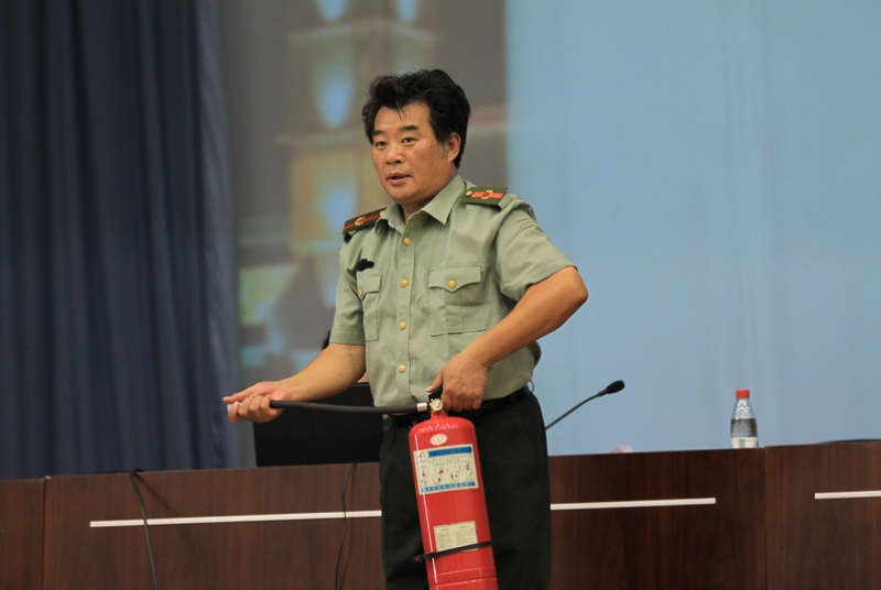 頓處長還現場示范了滅火器材的具體操作方法,并再次提醒學員遇到火災時不要慌亂、要及時撥打火警或校園110(阜成路校區:68984110,良鄉校區:81351110)。他詳細的舉例、具體的分析、生動的解說為他贏得了一片熱烈的掌聲。