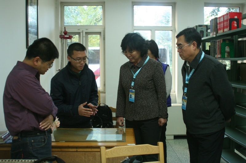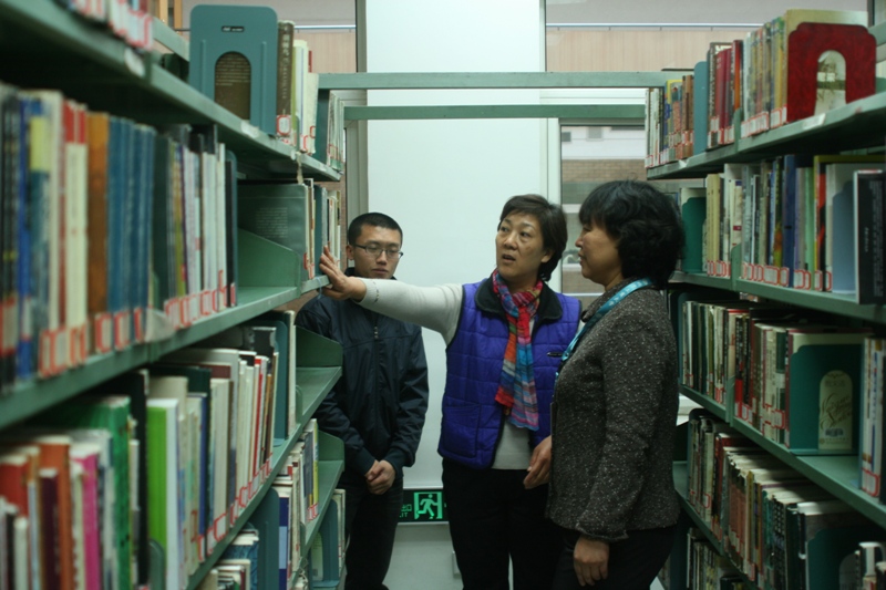 10月25日上午,圖書館館長高潤芝、機關二總支書記兼副館長郭一行、副館長張長恒在阜成路校區文學書庫進行勤工助學學生自治工作檢查。