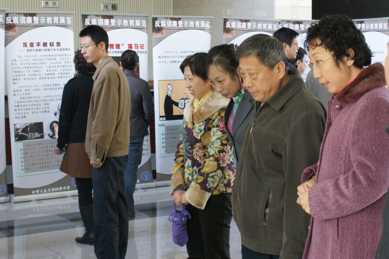 本展覽內容曾于今年上半年在教育部機關展出。本次在我校展出,得到了中央紀委駐教育部紀檢組、監察部駐教育部監察局有關部門的大力支持。學校紀委辦監察處、黨委宣傳部承辦了具體工作。