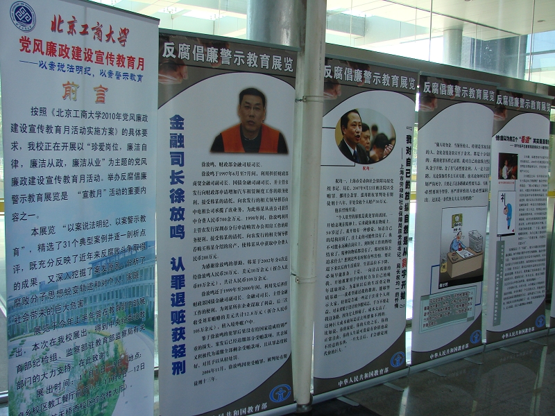 按照《北京工商大學2010年黨風廉政建設宣傳教育月活動實施方案》的具體要求,我校正在開展以“珍愛崗位,廉潔自律,廉潔從政,廉潔從業”為主題的黨風廉政建設宣傳教育月活動,舉辦反腐倡廉警示教育展覽是“宣教月”活動的重要內容之一。