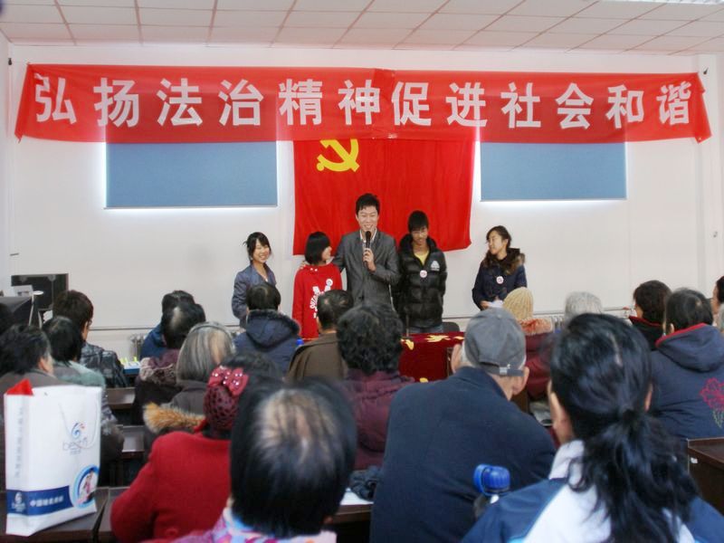 此次活動共有40余名居民參與,并現(xiàn)場接待了10余人咨詢相關(guān)的法律問題,同時向居民發(fā)放法制宣傳資料80份,教育居民增強法制意識和自我保護意識,自覺學(xué)法、守法和用法。當自身權(quán)益受到侵犯時,學(xué)會運用法律武器保護自身的合法權(quán)益。夏莊文化社區(qū)的工作人員的積極支持與配合我校活動,當?shù)鼐用褚步o予了大力支持,活動現(xiàn)場座無虛席,氣氛十分活躍。