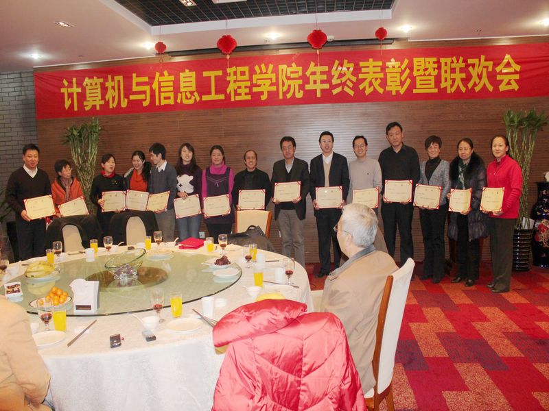 2010年,計信學院全體教職工積極努力,團結協作,認真完成了教學、科研和社會工作等各項任務,為學校和學院的發展做出了貢獻。為發揚成績,激勵先進,大會首先對2010年成績顯著的先進個人和先進集體進行了表彰。此次表彰共設九個獎項:教學成果獎、科研貢獻獎、優秀學術論文獎、學科建設成果獎、校慶工作先進個人獎、指導學生學科競賽先進個人獎、優秀班主任獎、學術活動優秀組織獎、實驗室建設優秀個人獎。共計64名老師和3個系獲得了以上獎項。
