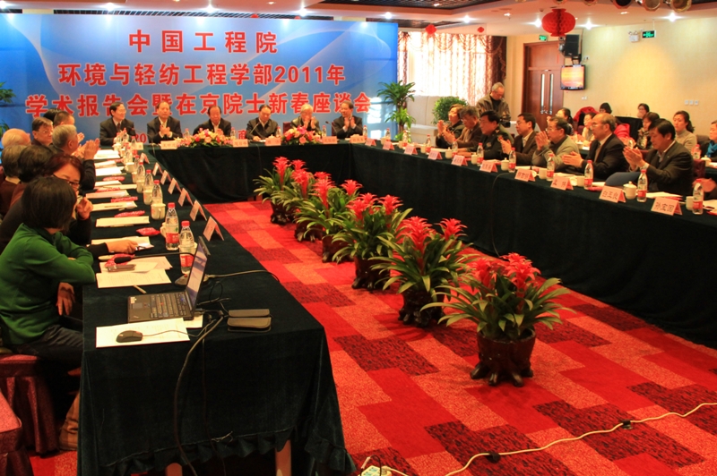 1月21日下午,北京工商大學(xué)蓬蓽生輝,中國工程院院長周濟(jì)、副院長旭日干、原副院長沈國舫、環(huán)境學(xué)部在京院士陳聯(lián)壽、丁一匯、顧夏聲 、郝吉明、侯立安、季國標(biāo)、金鑒明、李澤椿、劉鴻亮、孟偉、龐國芳、錢易、曲久輝、任陣海、孫寶國、湯鴻霄、唐孝炎、王文興、魏復(fù)盛、徐祥德、許建民、 張懿、周國泰和中國輕工業(yè)聯(lián)合會副會長王世成來到我校,參加2011年中國工程院環(huán)境學(xué)部學(xué)術(shù)報告會暨在京院士新春座談會。校黨委書記孫堯東、校長譚向勇、副校長孫寶國代表學(xué)校對各位領(lǐng)導(dǎo)、院士及專家的蒞臨表示熱烈的歡迎。會議由中國工程院院士、環(huán)境學(xué)部主任郝吉明主持。