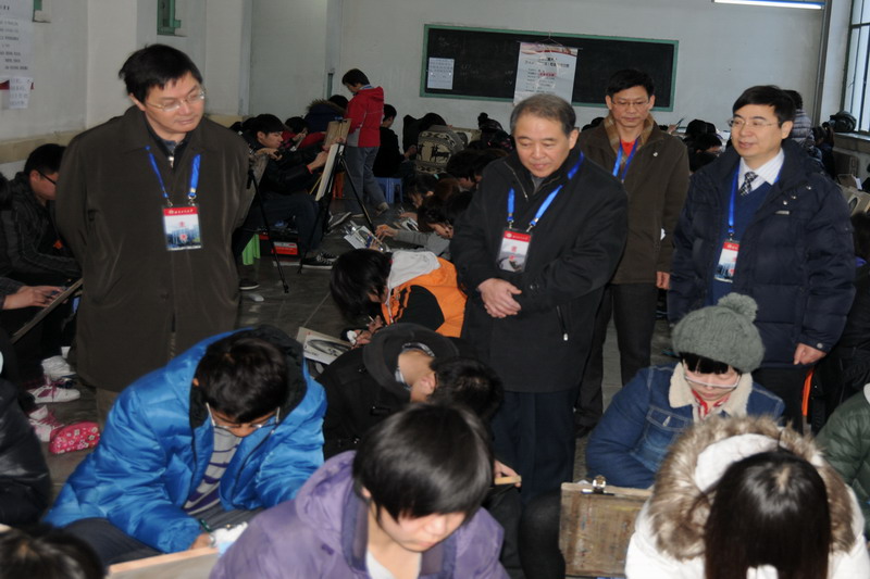 考試開考后,黨委書記孫堯東、副校長李朝鮮到藝術類招生考場檢查工作。孫堯東和李朝鮮詢問了報名人數(shù)、考試安排并慰問了現(xiàn)場負責考務的老師,指出藝術類招生錄取工作雖然是一項一年一度的常規(guī)工作,但與廣大人民群眾的切身利益密切相關,因此要高度重視,確保公平公正、不出問題,做到讓社會滿意、家長滿意、考生滿意。