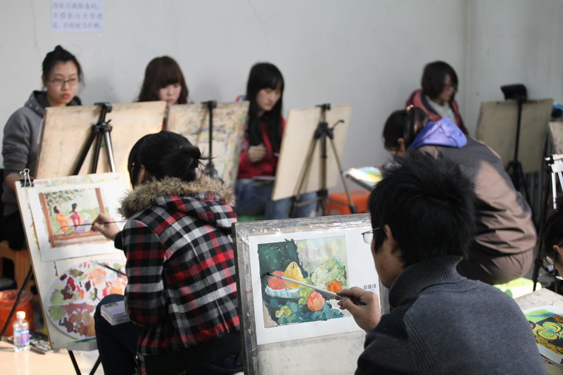2月14日,我校藝術類考試在經(jīng)過了多天的悉心準備后在阜成路校區(qū)開考。上午八點半,參加第一場考試的同學陸續(xù)走進考場,九點考試正式開始,今天的考試科目為素描和色彩。