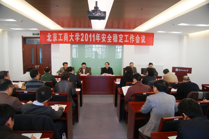 會上,黨委書記孫堯東代表學校黨委與各二級單位簽訂了《北京工商大學2011年安全穩定責任書》。保衛處處長頓勁松總結了學校2010年安全穩定工作。