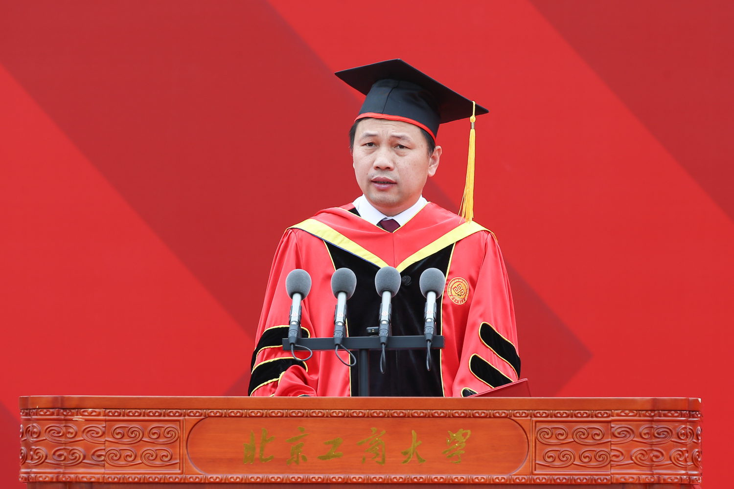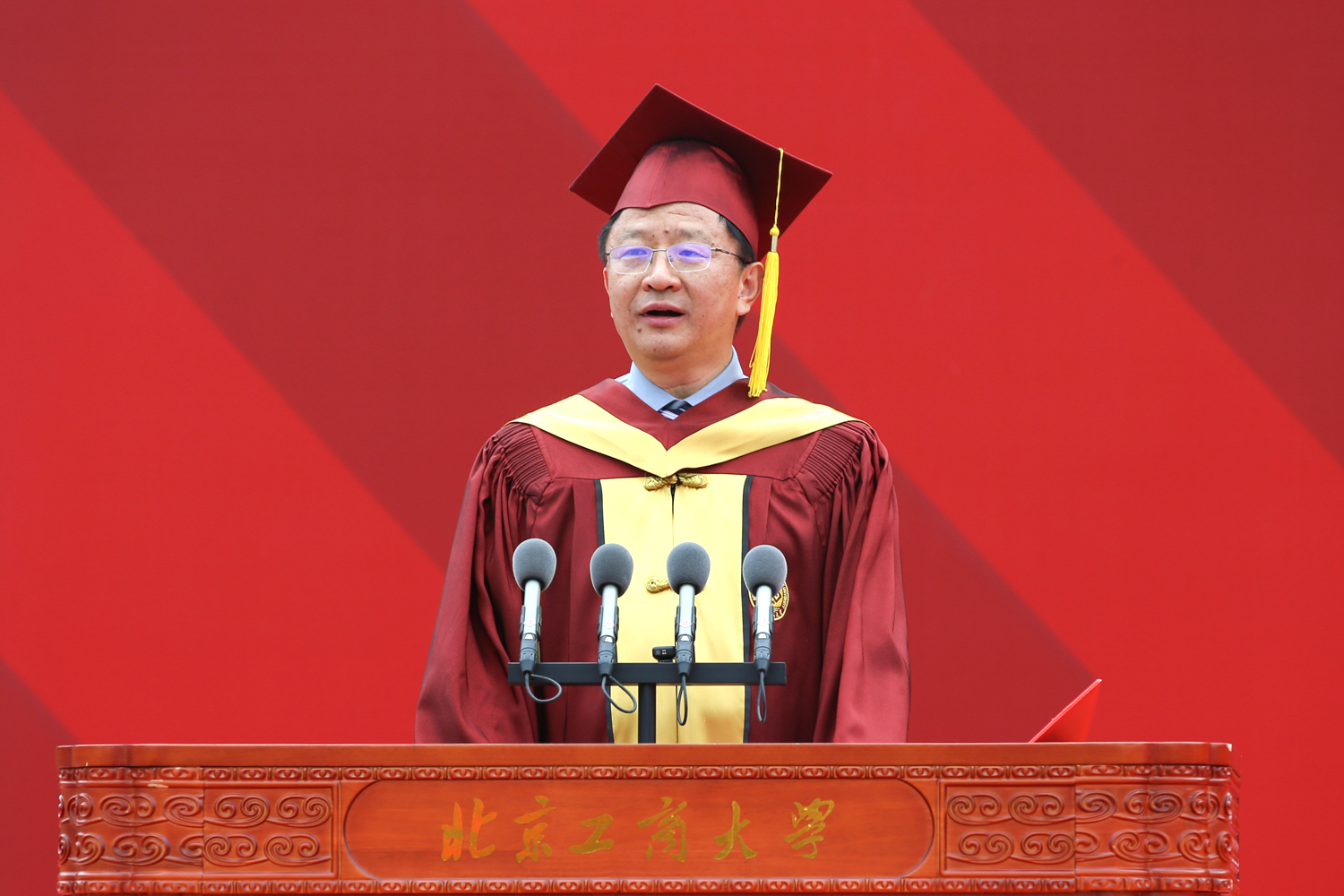 黃先開分享了自己的三點感悟:一是砥礪前行,有大志向。學子們要始終牢記今天的中國在世界大格局中的地位,不畏艱難,不懼挑戰(zhàn),勇敢地去追尋屬于大家的星辰大海;二是縱橫天下,有大格局。要自覺擔當重任,讓青春在實現(xiàn)中華民族偉大復興的中國夢中綻放異彩,在祖國最需要的地方發(fā)光發(fā)熱,貢獻青春力量;三是要海納百川,有大胸懷。要以開放的心態(tài)和包容的精神,擁抱多元而美好的世界,創(chuàng)造人類文明的輝煌未來。他寄語全體畢業(yè)生要懷揣北工商人的責任擔當,在推進強國建設、民族復興偉業(yè)中展現(xiàn)青春作為、彰顯青春風采、貢獻青春力量,奮力書寫為中國式現(xiàn)代化挺膺擔當?shù)那啻浩隆?/span>