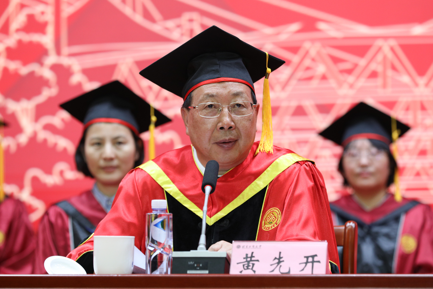 校領導黃先開、郭建華、宋曉欣、鄭文紅、楊紅、徐丹丹、毛新述、寇紅江出席畢業(yè)典禮。學校86級校友——居然之家創(chuàng)始人、董事長汪林朋,校學位委員會成員、各學院領導、教師代表、相關職能部門負責人參加典禮。典禮由黨委書記黃先開主持。