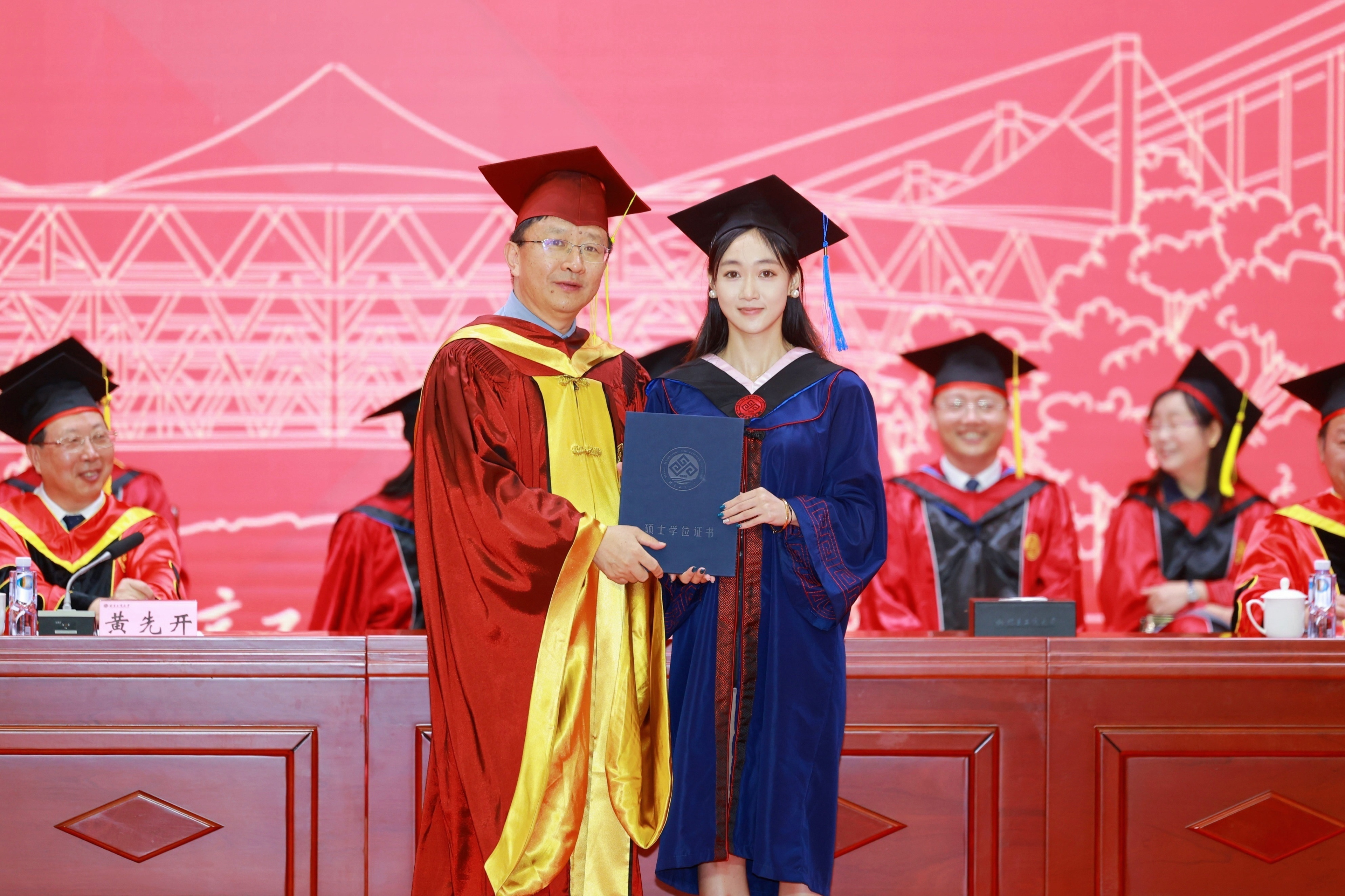 畢業(yè)典禮后,學校在良鄉(xiāng)主校區(qū)A報告廳舉行了2024屆北京市優(yōu)秀畢業(yè)生學位授予儀式。校領導黃先開、郭建華、宋曉欣、鄭文紅、楊紅、徐丹丹、毛新述、寇紅江出席儀式,學位評定委員會成員、各學院負責人和全體市級優(yōu)秀畢業(yè)生參加儀式。