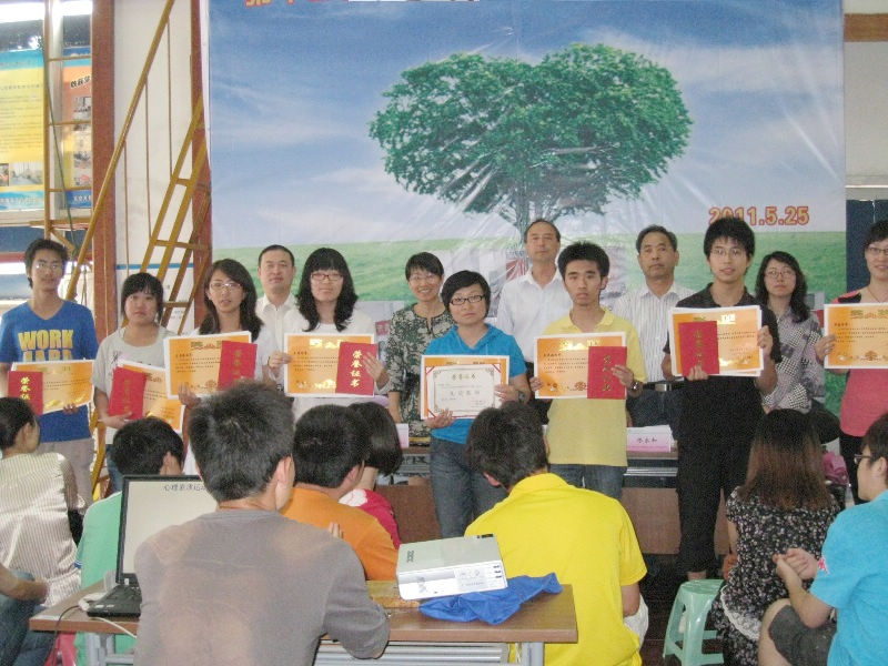 閉幕式由學生處處長呂素香主持。心理中心劉立新老師首先就本次心理健康節活動做了總結,心理中心主任林永和教授公布了本次心理健康節期間我校學生參加全市及學校各項比賽的獲獎名單,并宣讀了《2010-2011學年度心理素質教育工作先進表彰決定》。隨后,參加閉幕式的各位領導為獲獎教師和學生代表頒獎。最后,學生代表向學校心理素質教育中心贈送了親手制作的以“親近你我,給力幸福”為主題的十字繡,表達了對心理素質教育中心、長期關心學生健康成長和全面發展的各級領導與老師的感謝與敬意。