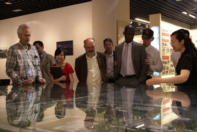 5月28日上午,美國南加州大學(xué)學(xué)者代表考察團John Mutlow等一行15人在全國工商聯(lián)房地產(chǎn)商會秘書長黃嵐和房山區(qū)區(qū)長助理高教園區(qū)建設(shè)委員會主任高培軍的陪同下,來良鄉(xiāng)校區(qū)參觀考察。副校長呼文亮親切接待了代表團一行。