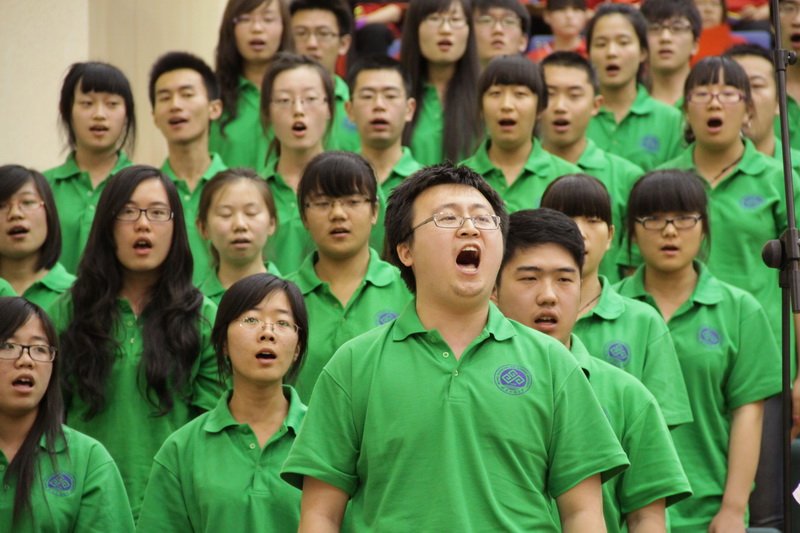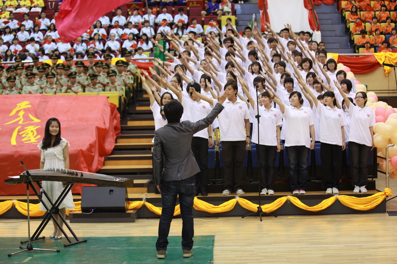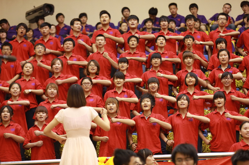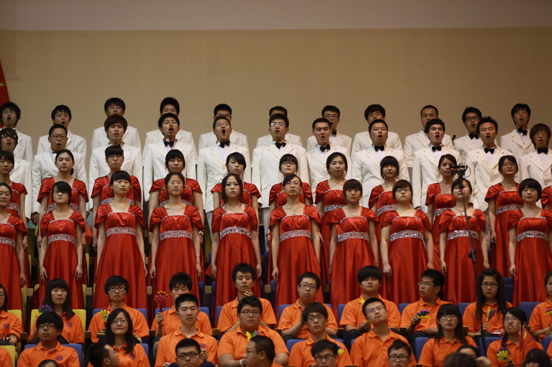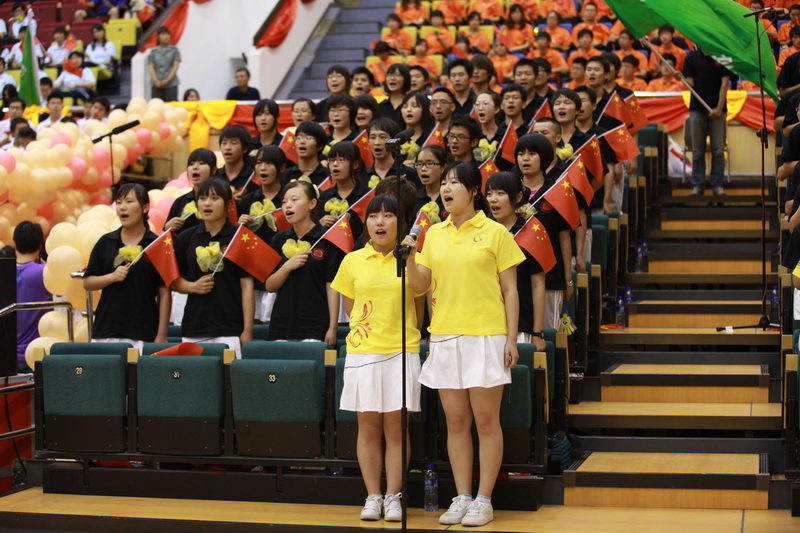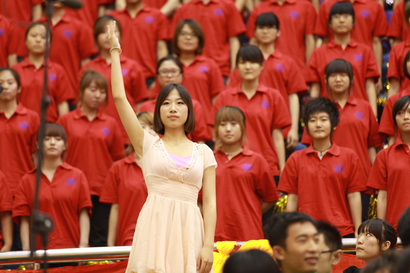 第一個演唱的外國語學院以《年輕的朋友來相會》開唱,展現了當代大學生的青春活力。應著全場觀眾的掌聲,《紅旗飄飄》的歌聲飄蕩全場,詮釋了當代大學生對祖國的無限熱愛。