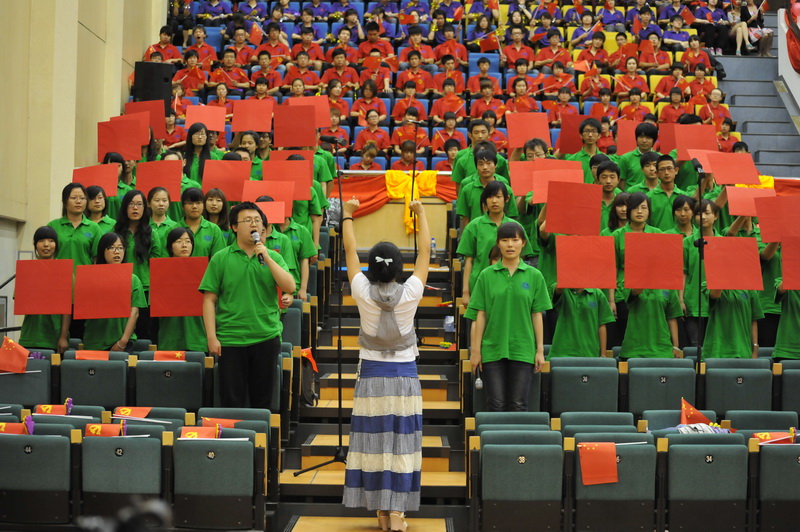 國旗,黨旗,校旗;歌聲,笑聲,掌聲,“五月的鮮花,特殊的黨日”千人大合唱歌詠比賽熱鬧非凡、精彩紛呈。各院都精心準備,大展歌喉,歌聲時而鏗鏘,時而深情,表達了北工商學子對祖國、對中國共產黨的熱愛和團結向上、銳意進取的精神。