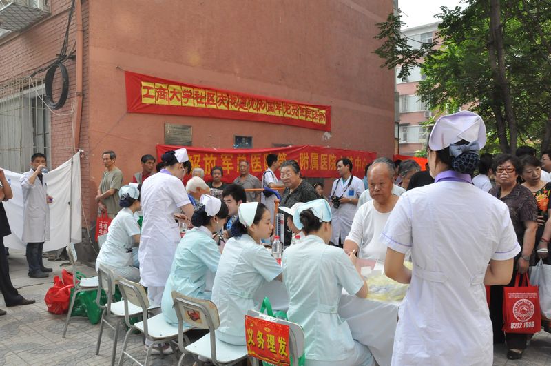 為慶祝中國共產黨建黨90周年,后勤黨總支、后勤分工會聯合三O四醫院、社區居委會,以“牢記黨的宗旨,熱情為民服務”為主題,組織黨員、入黨積極分子、工會會員和社區服務人員共84人,在阜成路校區東、西家屬區開展便民服務活動。