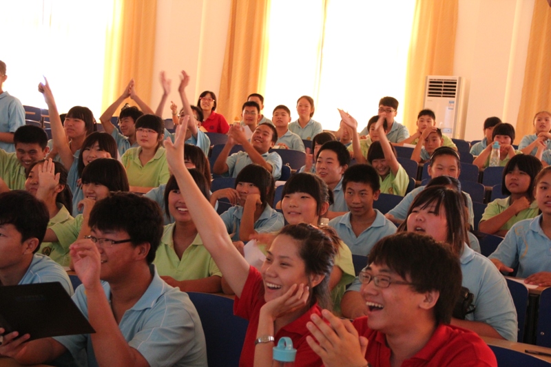 孩子們在聽課的過程中都表現得非常專注,盡管這是一個從未涉及過的領域,但他們都試圖用心去慢慢體會主講人所提到的表演要點。而在舉例說明情感和語言的運用方法時,剛剛在第七屆“商之夜”晚會上有過精彩表現的鄭岑也即興表演了兩句當時的經典臺詞,博得了孩子們熱烈的掌聲。