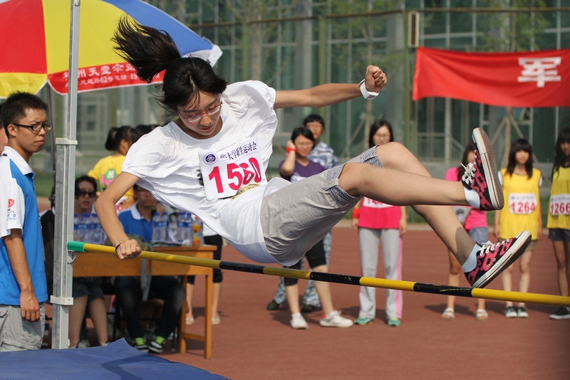 在2011屆新生運動會上,有七名運動員是第一次參加跳高比賽,1米的起跳高度,她們遲疑過,膽怯過,但從未放棄過,用信心和行動證明了自己的實力。