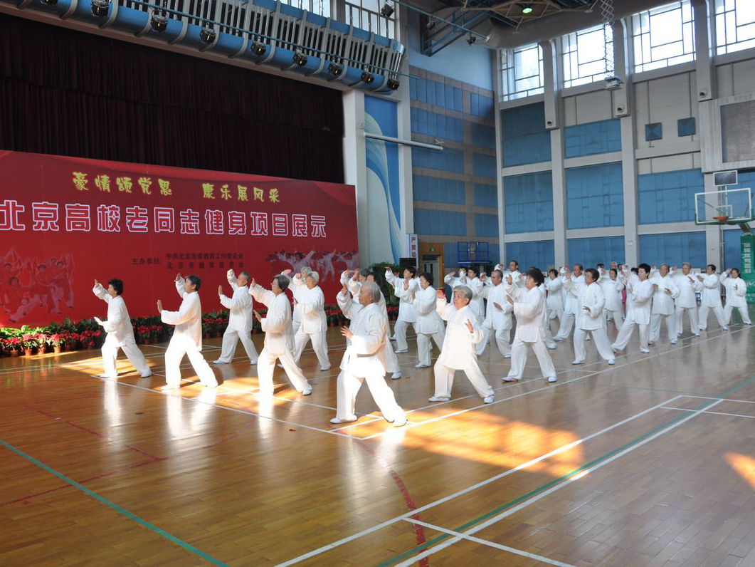 10月18日,我校太極隊36名離退休干部與北京高校廣大離退休干部歡聚在北方工業(yè)大學體育館,參加“豪情頌黨恩、康樂展風采”——北京高校離退休干部健身項目展示活動。參加太極拳展示的每一位離退休干部,以昂揚向上的精神風貌展示了我校離退休干部豐富多彩的晚年生活。本次北京高校離退休干部健身項目展示活動共有20所高校參加,我校太極隊獲得北京高校老同志健身項目展示活動樂齡風采獎。