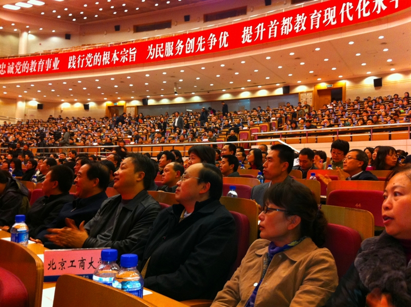 11月15日下午,首都師范大學(xué)黨委書記張雪同志先進(jìn)事跡報(bào)告會(huì)在北京會(huì)議中心舉行。首都教育系統(tǒng)千余名師生聆聽了報(bào)告會(huì)。我校黨委書記孫堯東、副校長(zhǎng)張?jiān)拧⒎降掠⒓安糠种袑痈刹繀⒓恿藞?bào)告會(huì)。