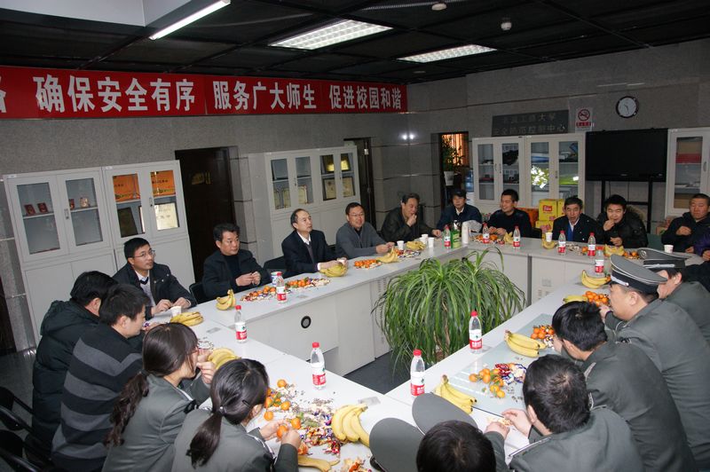 盧思鋒率隊于11時和15時分別在良鄉校區和阜成路校區檢查了學校總值班室、應急指揮中心、圖書館、動力站、后勤24小時服務大廳、通宵教室、保衛門崗和學生宿舍等重點部位的安全工作,詳細了解值班職工假期的生活保障情況,他要求每位值班干部和職工要把安全生產放在工作首位,確保全校師生過一個安樂祥和的新春佳節。他希望后勤保衛職工在新的一年里再接再厲,繼續為全校師生員工提供更加優質的后勤服務保障,以更加優異的成績迎接黨的十八大勝利召開。