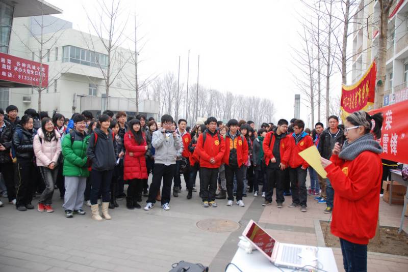 為使廣大同學在學雷鋒活動中提高思想認識,各院(部)團總支還積極組織了主題團日活動,開展主題報告會、表彰會、班會、座談會等,使同學們挖掘身邊的榜樣,感受“身邊的雷鋒”的模范帶頭力量,深入思考大學生如何踐行學習雷鋒精神。其中,經濟學院將于3月7日對曾榮獲北京市“萬名孝星”稱號的經濟09班黃迪同學,舉行個人事跡報告會,通過身邊的真人真事,讓同學們感受到榜樣的力量。