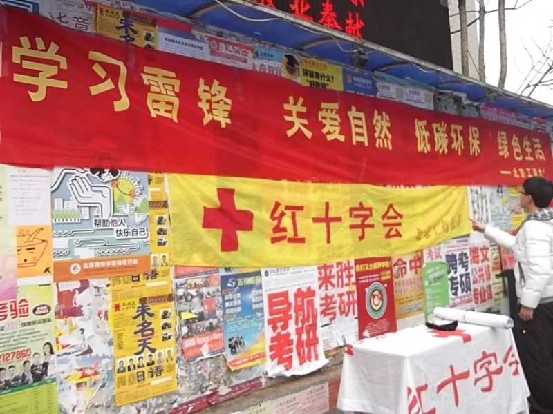 同時,校內也展開了豐富多樣的志愿活動。校團委志愿者在3月3日學校教師招聘工作中進行了引導志愿服務,為來校應聘者提供了便利;校學生會為規范食堂秩序、營造良好用餐環境,中午在學生食堂協助維護排隊秩序、清理殘食的志愿活動;校學生會還聯合學生紅十字會來到阜成路校區附近的公交車站,進行“學習雷鋒關愛自然 文明交通 安全出行”主題宣傳活動;商學院主辦了跳蚤書市,為同學們交換書籍搭建平臺。