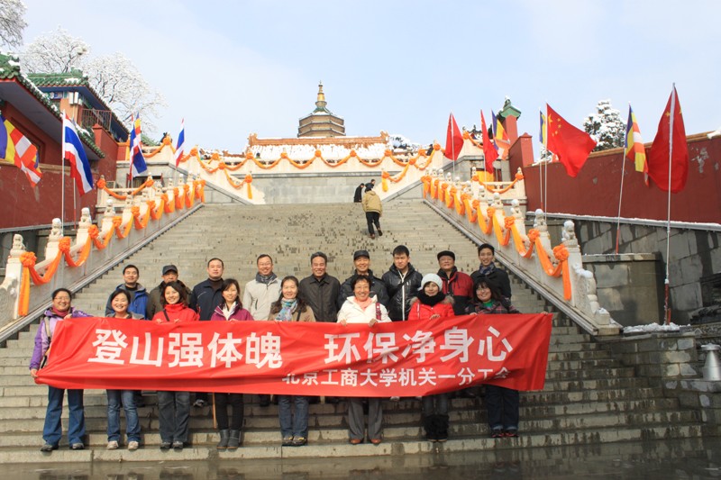 3月18日的清晨,雪后初霽、空氣清新。為豐富學校機關干部的業余生活,進一步增強機關干部的凝聚力,促進身心健康、激發工作熱情,不斷加強各部門的聯系和交流,學校機關一分工會17名工會成員在學校工會常務副主席韓寶龍,機關第一黨總支書記、機關一分工會主席楊巧明,學校辦公室主任、機關第一黨總支副書記吉濤的帶領下,以“登山強體魄環保凈身心”為主題,前往北京西山八大處公園,相約人間三月天,擁抱美麗大自然。在欣賞春景、陶冶情操、奮勇攀登的同時,會員們將游人丟棄在山上的塑料瓶、塑料袋、果皮、紙屑等垃圾揀拾起來,放在垃圾桶里,為大自然的清潔、美麗做出自己的貢獻,努力做到“躬身—公德—工商情,凈山—靜心—盡開顏”。