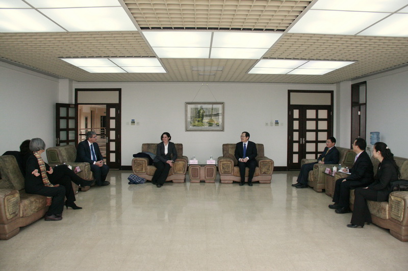 3月19日上午,譚向勇校長在良鄉校區接見了前來我校訪問的美國昆尼皮亞克大學副校長黛安娜·阿里扎(Diane Ariza)及其代表團一行4人。陪同黛安娜副校長來訪的有昆尼皮亞克大學商學院副院長理查德·麥卡錫(Richard McCarthy)、商學院副院長蘇珊·麥克蒂爾南(Susan McTiernan)和商學院教授何曉紅。李朝鮮副校長陪同接見。