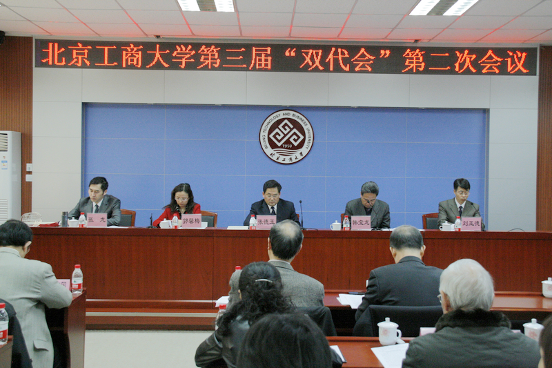 3月25日,學校第三屆“雙代會”第二次會議在阜成路校區召開。大會以“求真務實,開拓創新,團結動員廣大教職工積極投身學校教育教學改革”為主題。包括校領導孫堯東、譚向勇、盧思鋒、張德玉、孫寶國、李朝鮮、張耘、呼文亮、方德英在內的116名正式代表出席大會。學校離退休老領導王福成、丁士堃應邀參會。各單位、各部門的主要負責人列席了大會。