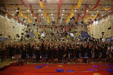 與往年不同,本屆畢業典禮的最后采取了畢業歌會的形式,一段段溫情的曲調,一句句勵志的歌詞帶著大家再次回顧了青春的記憶和收獲。來自各學院副書記和輔導員們共同表演的勁舞“最炫民族風”將現場的氣氛推向高潮。身穿學士服的學子們爭相合影留念。在閃光燈的頻頻閃爍中,工商學子們青春里最美好的瞬間在此刻定格為永恒。