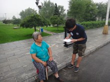調研組的同學們也不甘落后,兵分兩路開始了他們第一天的活動。清晨,調研一組的同學們頂著小雨一路前行,經過1小時步行抵達紅葉敬老院。他們為老人們帶去了鮮奶、西瓜、香蕉等慰問品,老人們看到同學們的到來都非常高興。同學們幫老人們打掃了房間,與老人談心,陪他們下象棋,給他們單調的生活帶來了樂趣。調研二組的同學們在王一老師的帶領下來到了洄城村村委會,對琉璃河鎮的經濟、文化等情況進行了解。同學們此行不僅了解了當地的特色節日和古建筑等,還對有關琉璃河橋附近環境及琉璃河水的情況進行了調研。通過面對面地采訪交流,調研二組的同學對琉璃河地區的人文、歷史以及民生情況有了更深入的了解和認識。