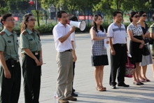 今天下午,藝術(shù)與傳媒學(xué)院院長(zhǎng)羅子明、外國(guó)語(yǔ)學(xué)院院長(zhǎng)羅朝能、外國(guó)語(yǔ)學(xué)院黨總支書(shū)記劉紅艷等兩院領(lǐng)導(dǎo)以及2012級(jí)新生班主任來(lái)到五營(yíng)訓(xùn)練場(chǎng)指揮工作,看望大一新生。兩院領(lǐng)導(dǎo)為新生和教官們帶去了慰問(wèn)品,并勉勵(lì)大一新生繼續(xù)努力,發(fā)揚(yáng)吃苦耐勞的精神,創(chuàng)造屬于五營(yíng)的傳奇。一份份禮物為正在軍訓(xùn)的同學(xué)們帶來(lái)了一絲絲涼爽,同時(shí)也讓他們?cè)谶@里感受到了家的溫暖。