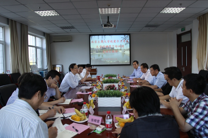 9月12日下午,北京工商大學首期赴愛爾蘭考克大學科研培訓團匯報會在阜成路校區召開,會議由科技處處長楊有紅主持,校長譚向勇、副校長謝志華、李朝鮮出席會議并聽取科研培訓團成員的匯報。